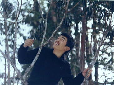 かなり立派な神社だった。境内の松林の森は以外と広く,神社の構えも堂々たるもので鳥居もかなり大きい。 能舞台が細長い社務所脇中央を占め,奥の本殿には灯がともされている。 そして境内には薄ら積もった粉雪が周りを一層薄白く浮き上げださせていた。 メンバーは相変わらずの顔ぶれだ。マタに沼津.中沢.そして富山先輩が加わった。 中沢は早速.酒を仕入れに出掛けた。 氷付いた松林の林床にペグは入いらぬ硬さ。僕は沼津と神楽堂の脇や床下から見つけ出した梯子を使わせて頂きテントを立てる。 樹冠を透し星の輝く森の下に。 焼津から参加される先輩を迎えに行ったマタも,中沢も寒い寒いと言いながら11時過ぎに戻ってきた。 總全5名.積雪は例年なみと思われる。人気のない愉快な山行になろう。 西山神社―1660m付近Bc 松林から漏ゆる朝日を浴びる境内,パッキング |