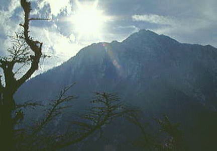 トマに耳から西黒尾根を望み.遠方は赤城山 西黒尾根の雪稜にでて 湯檜曽川対岸より西黒尾根12月11日. 上野23:56= 12日. 土合一西黒尾根取付6:30一9:50谷川岳10:30一13:45武能岳一14:10蓬峠ヒュッテ15:00一17:40土樽 ・・蓬峠ヒュッテで蓬パーティと合流。 夜明け前 旧道を三折すると西黒尾根登山口にでる。何処も同じ急登の取付は以外と短く尾根上の国鉄鉄搭にでた。 明け始めた夜空は星屑を西方へ追いやり始めている。 そして乳白色のベールに包まれた夜明けの空間が闇空を押しだし始めていた。 夜と夜明けの同居する空間は次第に白み.明るさが勢力を持ち.樹間にうっそうと漂っていた闇間を消し始めている。 笠ヶ岳頂稜の一角に陽光が強く放された。そして一点の光線の漏れが太陽を導きだしている。 谷川岳西黒尾根 夜明け 1本取る。憬雪小屋跡.大空にピンクの朝焼けが生まれた。 真白い白銀は眩しさを増し,仰げば雪稜の上にソフトクリームのような耳が2つ突き出している。 そしてその谷川岳の上には雲1つない蒼空が広がりだしていた。 間を空けずピンクの山肌は薄れ.陽光の導きが雪に覆われた頂を照らしだした。目指す頂はもう煌き輝く雪稜として望まれる。 素晴らしい夜明けの先に雪の王国が横たわっていた。 気ははじゃぎ.視界の充分利く雪尾根は面白い程高度を上げていた。 雪稜 左手下.天神平のスキー場は蟻が群がっているよう見下ろされた。 こことは別世界を覗き込んでいるようだった。僕等は天界へと歩む。 谷川岳.肩で蓬パーティを待つ。 サブザックに腰を降ろし谷間を仰ぐ。じっとしても寒くはない。反って強い陽差しにポカポカさえ感じさせられた。 雪白さを更に眩く反射させ,白稜と紺碧の空とが境を築き.その境界線が僕の眼の前に飛び込んいる。 それはゴーグルを通しても眩みそうな強さを持っていた。 マタも僕もカメラを持って来なかったことを悔やんだ。 田中先輩も荒れると思っていたとカメラが欲しいと口を零していた。 頂稜 |