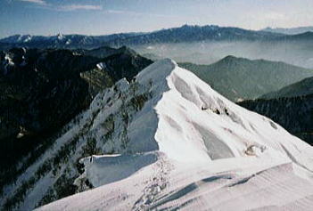 冬の谷川岳の国境稜線 新人として谷川岳西黒尾根〜蓬峠 感激溢れる雪稜 快晴.無風の別世界が冬型となり荒れ狂う 西黒尾根上より谷川岳 |