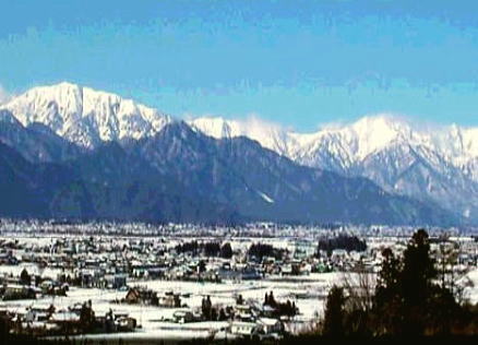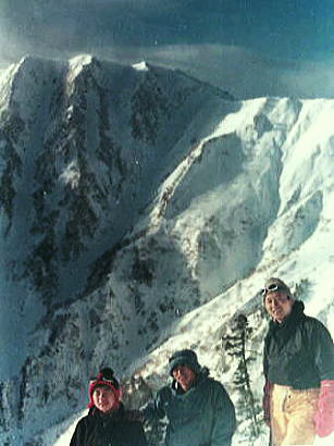 爺ヶ岳.頂稜 最後は小さな雪庇を崩し.以外と穏やかに雪稜にでられた。 鹿島槍ケ岳の鋭い双耳峰が眼の前に開かれる。目測では1時間も費やせば届く距離にある。 視界良好で望む岳々.全てが威圧する積雪の深き厚みに.雪表は更なる輝きを示している。 その素晴らしい眺望は裾野へと広がり.籠川谷のうねりに任せ.裾野には大町の町並みが明瞭に見下ろされた。 正月を迎え.のどかな陽差しが街並に注がれている。 爺ヶ岳南峰 霞から帳る頂稜の本峰と下山を前に八端君とマタ.沼津嬢 陽光を浴びた山の手.爺の山頂に私は今,そこに立っている。 山は帳を待つだけの静けさを保ち.我々を待ち受けていた。もう登るべき上のない頂に私達はいる。
