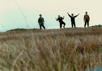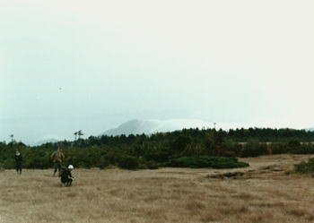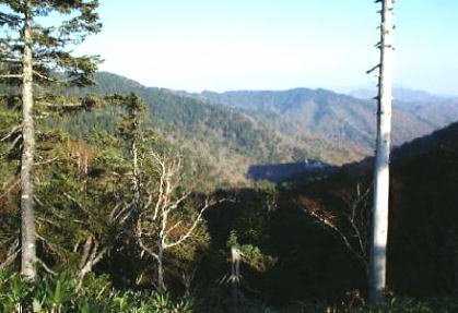 | 源流 帝釈山は深かった。求める頂稜もよく見定めぬと見逃がす程の踏み跡で獣径と思い偵察する。 古い団扇を見付け.これが五万分ノ一地図に書かれた径かと我ながら驚かされていた。 ここには沢登りに付きものの最後の藪漕ぎで「出た!」と云う言葉はなかった。 バラバラになって探り.右上に突き上げた所にでる。ここは太子堂から20mも離れていなかった。 このルートは頂稜に出て顧みると本来のサル沢ツメとも思われる。 田代山 「おおー!」と大きな叫びが出る。田代の湿原が太子堂の裏から一面に束の間の明るさに包まれ開かれた。 それは今までの藪とは泥雲の開け方で田代に出たという喜びの声に変わっている。 2つ目の言葉は必要としなかった。中沢君.内海君.それに和泉君が踊りだす。下界は既にガスが湧き包まれていた。.全ての裾野をその下に閉ざしている。 この頂は田代の山.黄金色に色付いた湿原を勇む心で歩みだす。そして時折崩れ落ちた木道を見付けていた。 はしゃぐ後輩達.勿論この広大な湿原は私達以外誰もいない頂だった。 田代山々頂 ![]() 下山 14:15田代太子堂,雨一15:10最初のコブ:20一17:45日暮峠一18:30雨:50一19:20田代山登山口.林道一20:00三河沢出合 ト=20:25「湯西川ホテル」h2. 喬木の藪径 田代の山頂から一歩.湯西川温泉へと下りだすとこの散策的明るさは逆戻りする。 急な尾根の下りは草木に被われ.ひっかりした踏み跡には違いないが足元を見定める径は消えていた。 更に自由奔放な倒木が先方を塞ぎ.這い周る根が踏み跡を遮っている。 まして雨が降りだした。泣きだしそうな雨粒は小降りから本降りに変り.先頭は草分け以外に露払いが始まった。 湯ノ花温泉へのはっきりした径とは.似ても似つかぬ径にる。 潅木の枝木が径に被さるのを分け.一つ目のコブを越えた所で大休止した。 雨はかなりの激しくなる。傘に身を委ねサンドイッチを口にし.再び荒れた尾根を下りだす。 指導標らしき道標は山中一度見付けた枯木山への分岐だけだった。後は在っても古く.浅焼け読むに読めぬ板切れになっていた。 その道標に「田代1.5k.湯西川20k」とある。 頑張る和泉君 馬力と忍耐のいる割には捗らない長い下りが続く。ガックリすると同時.黄昏が近づき時間が気に掛かりだす。 幸い分岐から径はよくなった。それでも和泉君は倒木に足を取られ転ぶことを繰り返す。 大分疲れが出てきたようだ。不適されては.無造作に足を出し,又転ぶ。 「頑張れ!」と声を掛けるも,足元は全く覗めぬ藪絡みの径が続き.被さる笹の背丈は高い。 新たに慎重さに身を構えるも.暫らくすると転ぶことを繰り返す。 巻き径で急に歩き易くなる。それでも雨は止みそうになかった。 日没に追うよう早足になる。黙々と歩くのみ。日暮峠まで2時間半のノーストップだった。 分かれ径 峠には四方に4本の径が分かれていた。 今歩んで来た径は更に東側を巻いて.一番はっきりした径を築いていた。 尾根沿いに南下する少し荒れた径. 径ははっきり分かれるも道標はない。 私は慎重に判断し.北側の谷に入り込んでいる踏み跡を目指す。 雨に叩かれ黄昏は早くも闇に包まれだしていた。薄く暗く一番心もとない尾根からの径を選んでいる。 日没の陰側に掛かる谷径に入り.一層暗さを増し足元が覚束なくなった。 靴底の感触で径を求めるようなる。下り径に急なジグザグを切り黙々と歩み.そして三河沢の林道にでた。 実に12時間の行動だった。馬坂沢前半の散策から谷を詰め.藪を漕ぎ.頂稜の湿原と慎重な藪径へ。 馬力と忍耐を用した下山路も.等々終わりに近ずいた。 2005年10月.今は県道249号線.栗山館岩線が下山径を走り.小田代東側を横切る。峠下の会津側にP・水有り. 湯西川20kの径は現在廃道化されている。況して三河沢への下り径は地形図からも失われている。 湯西川温泉 翌朝・・陽差しを浴びる中沢.和泉.内海.後輩達闇の三河沢林道は降り注ぐ豪雨 三河沢左岸に沿った林道に入いる。増水は枝沢を走る水が路面に溢れ.雨は激しさを増していた。 侘しい雨に叩かれる。山間い深く黄昏も早い林道に秋霖の冷雨に打たれ続いていた。 肌寒さに体は震え.早い帳が一層.気を落ち込ませていた。 山懐を絡むよう綴る林道はもう露面の水溜まりも気にせず.ジャボジャボ浸かりながら歩いていた。 雨水が湯西川林道にも流れ.持つ傘が重みを増していた。 闇の中 帳も落ち色彩を失った灰色の林道はもう闇の兆へと向っていた。 谷はまだ山深く.足元は尚更覚束なくなる。雨の中.黙々と歩む。そして運良く三河沢出合で車に拾われた。 荷台はトラックの飛沫と雨が混ざるも.ホットした気が心を安らげる。もう周りは闇で何にも見えなくなっていた。 黒部西川線の林道に入り雨は激しさを増し.荒れた凸凹道をトラックは尾を振り湯西川温泉へ向かい走る。 粗い運転に跳ね上げる荷台.カーブが多く踊る荷台によく尻を打つ。 落ちぬよう気を配うが闇と雨とで,とても落ち着かぬ危険な乗り心地になっていた。何時跳ね落とされるか判らない。 両