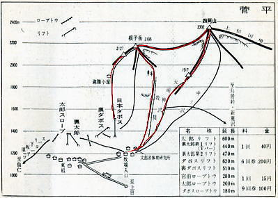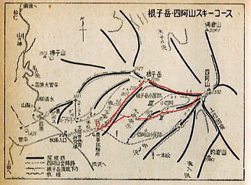 | 菅平,根子岳スキー中退 s47年(1972年)02月12〜13日.m新津賢.松村進 2月12日.上野18:45=22:00上田=23:00菅平.西組「酒井館」h ,,13日.起床7:00 宿―第一ゲレンデ9:00―避難小屋―根子岳肩―菅平14:30=15:35上田16:57=20:3 上野 上田から小高い丘に上ると やがて広々とした根子岳と四阿山からなる.雄大なスロープを持つ一大雪原にでる。 |