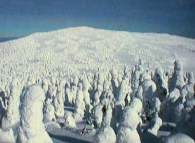 | 吾妻連峰Top . 吹雪の西吾妻スキー 再び惨敗の吾妻山へ 米沢駅前で握り拳のような大きなボタン雪が落ちる 後に焼失した「中屋」と共同風呂 , 晴れた日の西大嶺 |