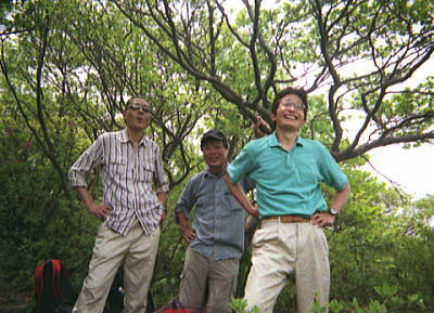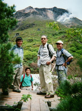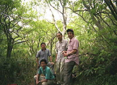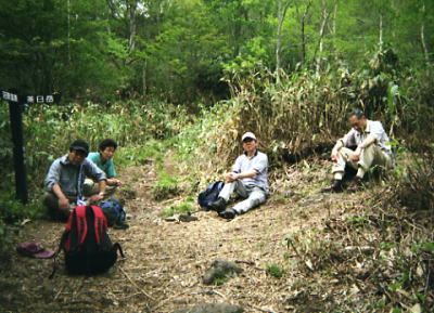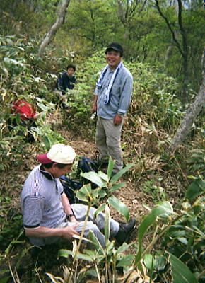 沼原―姥ヶ平―牛ヶ首―日の出平―沼原 10日曇.御徒町7:20=那須IC.那須街道=広谷地.矢板那須線=板室街道=乙女ノ滝=沼原11:00⇔姥ヶ原.―13:00湿原1514m:40 ―牛ヶ首14:15―14:40日の出平15:00―16:50沼原=湯本.「グランドホテル愛寿」 11日雨.h9:00=12:20御徒町.421k 姥ヶ平 ![]() 入山して1本目.軽やかな笑い顔々 下山時.同じ姥ヶ平での最後の1本同期会 O.W.Tと6月上旬に大弛峠より金峰山周辺に登り.梓山に宿り雁坂トンネルを抜ける計画を立てていた。 宇都宮のSがRHC総会に出席.それが切っ掛けで同期男子全員での山行話しが進み.場所は那須に変更する。 Sは飯能の先の高麗より始発で参加した。Wは大宮から新幹線でOと落ち合い.私とS.Tは沼原で彼等と合流する形を取る。 昨日.関東甲信と東北南部が梅雨入りした。シトシト雨降るも,翌10日は予報では晴天が約束されていた。 同期会は1969年08月の越後八海山以来.松本嬢は欠席するが37年振りの山行になる。 沼原 板室を抜け沼原へと高度に上がると共鳴するかのよう「しぐらし」の賑やかな声を聞く。もう春蝉が鳴いている。 新緑の被われた沼原への道.車は唸り高度を上げ登って行く。 1972年11月.Oと裏那須を周り大峠から下った昔の街道である。バス停を求め板室までアスファルト道路を歩かされていた。 沼原Pは蛸焼き屋の出店が出るほど車で満杯.歩き始めたのが11時.遅い入山になる。ここに居る人達は笹竹採りの人が多い。 熊避けの鈴を鳴らし.その1人に山登りより山菜を採らぬかと誘われている。 裏那須 裾の緩斜面は曲笹が多い。山肌は若葉で清々しい樹葉で溢れ,遅い山桜が一輪の花を残し咲き終えていた。 高度を上げるに連れ.今度は山ツツジが咲き揃い.次第にその数を増し点々と咲き競っている。 Tは前日の定期診断も無事終え.難病のなか20数年振りの山に挑む。Sも長年.山とは離れ.今回は久し振りの山だそうだ。 Oがトップで順調に1本取った。 ヒョウタン池より茶臼岳.鉄山 整然と歩む同期太い白樺の幹が先を被い.程好い湿りの土道が心地よい。 登りの時間が遅く.反って擦れ違う登山者もいなかった。山のマナーはよくなっている。径筋に小さいゴミも見受けられず。 足元には小さなイワカガミが程好い間隔で競うよう咲いている。 ハクサンシャクナゲも群がり始めている。葉の艶がよければ花弁も大きく艶やかで.葉皮の厚みにも育ちのよさが伺える。 光沢よく薄ピンクの花ビラが群がり.その淡白さが以外と確りした色合いを示し咲き競っている。 登っている谷間を隔てて.那須から続く流石山の尾根が大きく望まれた。 面白いコースだと大川は云うものの向かいは眺める以上に遠いい。尾根1つ先でも遠いい山のようだ。裾野は南会津になる。 足元の沢沿いに残雪が見受けられた。まだある残雪に関心しつつ.白樺から岳樺が絡む広い湿原にでた。 噴煙を上げる茶臼岳を背に受けてのヒョウタン池は残雪に半ば湖畔を埋めていた。 最後に詰めるガレ場と南会津の山々 裏那須の登り見上げると久し振りに見る茶臼岳は異様な大きさで見上げられている。表那須とは又違った荒々し岩峰を構え聳えている。 腰を下ろしての大休止.若葉の香りと大きな空.空気も美味い。各々が適当な枯れ草の上に坐り.食と摂る。 牛ヶ首と茶臼岳南面ガレを登ると牛ヶ首に立つ。尾根筋には這松が茂り.ここだけは憩う人が多かった。 風に乗り.強い硫黄の刺激が流れれ鼻にくる。那須の高原は霞が掛かり.肌寒く風だけが強かった。 下山を迎えた日の出平南月山への頂稜の径,穏やかな起伏はミネサクラの宝庫とOが説明するも.時期は既に遅く過ぎていた。 地元のOは何回か.この尾根の満開のミネサクラを観賞している。その素晴らしさも今はサクランボの実に変わっていた。 朝日岳以北ではミネサクラがまだ一面に咲いているらしい。 下山 沼原を目指す日の出平にでて.齧るトマトが美味かった。 ここで時間切れになる。もう1時間あれば南月山越えができるが諦める。肩より沼原の貯水池を望み山を下りた。 大峠から続く流石山の尾根 枯草と若葉の山腹径 頂稜近くまで熊笹が被う明るい下山径曲根の径は雨でも降れば苦労しそうなコース.溜池での蛙の産卵と横切る蛇を見る。 新緑に綴られた径は何処までも清々しく.青葉の樹林が重なり合う山腹径を下る。 1514m地点の湿原で大休止 先々週も那須に来たO 定年を迎えたS 新幹線で山に出勤したW 相変わらず笑い顔が徳をしているT程好い疲労に酔いながら山を下りる。 大川はカエデとモミジの違いが分からないでいたようだ? 入山の時の話が下山しても続いている。 60になろうとする同期5名。この後は湯本に戻ると露天風呂と酒宴が待っている。 湯本新那須「グランドホテル愛寿」.透明単純温泉.森林浴効果のある露天風呂.宿代@¥10.000 高層天気図10日9時.11日9時 秋の裏那須と若葉の南那須Top 山の経歴.経過To |