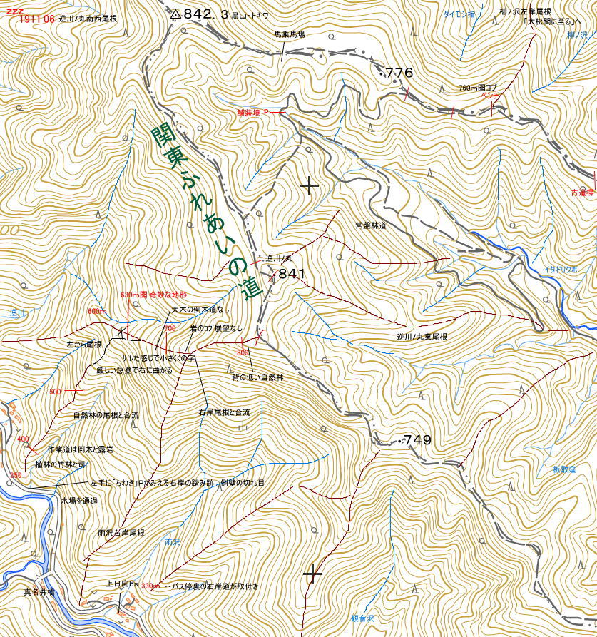 2024年03月. jr川井から名坂林道.観音沢左岸尾根を経て逆川ノ丸―常陸林道で境界尾根を越え.柳沢左岸尾根.名栗川の町道と県道に黒指bs