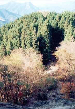 ヤセオネ峠で左に宿谷ノ滝への道を分け.植林帯の尾根を詰めた処にで物見山に立つ。