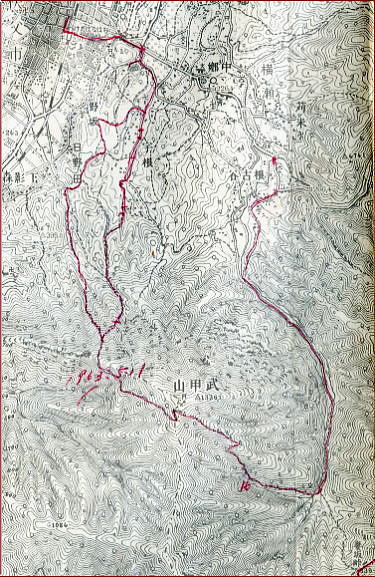 木原と武甲山の分岐で・・伊豆ヶ岳ウォッ地図