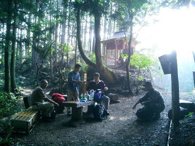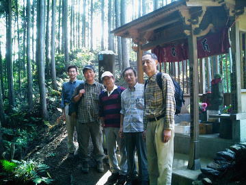 生憎.翌日の伊豆ケ岳ハイクは雨のため中止. ob松村.鈴木.大川(s43卒)・・奥武蔵子の権現にて