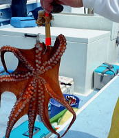 ここでも水深200mでサバの入れ食いが続いた。更にスルメイカに変り大型が出たところで底釣りへと。