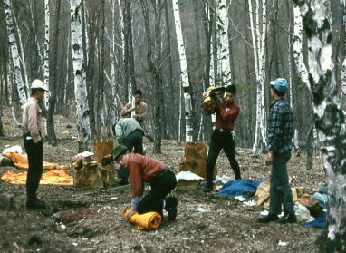| 5月14日.晴曇後雨.sL割田.行動日誌. 梓川一国師岳手前鞍部 千曲川沿いの秋谷で女子パーティと別れ.Bパーティとともに終点.梓山に着く。元気に準備体操して出発した。 まもなく新人の1人がバテ.2人の付き添いを残し.まだ元気な我々新人を連れ歩む。 やがてチラホラ疎らに染まる雪面は雪深くなる。予想以上の積雪だ。 うまい具合に岩穴の出合い.1本取る。また歩き始めたところで.遅れた新人が追いつく。 最後の登りは胸までつかる程のラッセルだった。リーダーとサブリーダーの必死のラッセルで登りついたところは, 国師のピークと思いきや.さにあらず。新人の疲労を考慮して.ここに天張る。新人よ.ご苦労さんでした。割田記. 5:04小淵沢.小海線5:48=6:45信濃川上7:25.千曲バス(川上村営バス)=8:15梓山. 甲府でC.Dパーテーと分かれたのは真夜中だった。 朝方.小淵沢で小海線に乗り換え5ッ目の駅.信濃川上で降りる。 駅はローカル線にふさわしく.ホームも小さく可愛らしく思えた。 女子パーテと共にバスに揺られ.梓川の河原ではクラブ独特の体操をし体を慣らした。空は晴れ渡っている。 梓山8:25一8:55大休止9:20一10:10林道終点:20一11:00小:20一11:45小12:00一13:20岩小屋.昼食14:30 一15:30小:40一16:00国師の鞍部テ1 初めての一歩 歩き始めて10分.もう手が震えだす。重荷のため肩荷が詰り指の先まで痺れだす。 取り除こうとする努力も空しい。荷は重く前と離れまいとする気は.歩くことだけを強いてていた。 堪えているうち次第に体も馴染み.体のすじ筋は麻痺しだすも.ゆっくりだが次第に治まり始めていた。 1本.歩いて朝食を取る。今日は今まで以上に結飯が食べられた。 「これなら暫くは大丈夫耐えられるだろう」と思っているうち.脱落者がでる。宮内だ。 まだ朝食を済まし1時間も経たぬのにペースを乱し.ついには動かなくなった。 僕等の後を追いうよう.4年生と3年生に導かれていた。 残雪 先行を取ったBパーティは僕等よりかなり先を歩いている。 「追い付け!.追い越せ!」と声が掛かり.僕等は黙々と歩いた。 5月とは云え.まだこんな低地にも残雪がかなり残されている。 沢沿いは次第に残雪に被われ.山径の残雪は増々多く塞ぐようなる。 「抜け抜け!」と云う掛け声と共に.アッと言う間にBパーティに追いつき追い越した。 昼食はBパーティと一緒に岩小屋で取る。雪上に変わり.汗ばぬ体に肌寒さを憶えた。 先輩の差し出してくれた熱いしるこが美味い。飲む程に暖かみが増してきた。 1時間ばかり休んで出発しようとした時.宮内が先輩に引き連れられ登ってきた。 苦闘を剥き出しにして漸く身を支えているだけが.精一杯だった。 悲壮な姿宮内. 彼を目の前にして.真ともに見ることが出来なかった。 何か云いようのない屈魔で.僕自身を鏡に映し出しているようだった。小声て「ガンバレ!」と呟く。 積雪は第1関節から股までの深さになり.重荷にバランスを崩すと腰まで沈んでしまう格好が幾度かあった。 岩小屋で会った男女1パーテイー(クラブに関係のない)は後から付いてくる。径を失ってウロウロしていたらしい。 ラッセルは2年生が猛ハッスルするも.腐り掛けた雪がズブズブ潜り.中々進まなかった。 4時頃.枝尾根上に出たようだが.僕にはルートさえ分からなかった。 ザックに腰を下ろし休むも.冷雨が体は打たれている。汗と混じ合い冷え切った体をガタガタ震わせた。 落日を前に緊急幕営する。積雪は益々深さを増し,目的の大弛小屋までは大分手前となった。 初めてのテント生活の実践が雪上で始まった。 初めてのテント テントの中では割田さんが怒声を吐いてばかりいる。 初めてなのに何もかも上手くすることができようか。怒声られてばかりいる僕等。 テントに雨が漏れ.雪を溶かしての炊事は容易ではなかった。水を作ることから炊事は始まった。 グラシーから這い上がる冷えびえする冷気に.固まる体..コンロの火が暖かい。 食事 豚汁(味噌40g.里芋2個.豚肉30g.人参1/4.玉葱1/4) 佃煮30g.米(1人.計7.5合) 間食.氷砂糖.カンパン 例年より雪多く大弛小屋まで行けず.A.Bパーティー.同一行動をとる。 国師岳頂稜で2パーティ同一行動上段.西村先輩の隣りが私.割田.池田先輩に田中主将と続く. 下段は宮内.根岸先輩と須沢.三浦.俵.鈴木 6人の新人も卒業まで残ったのも私を含め2名 |