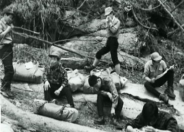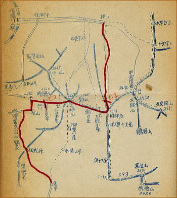 | 奥秩父国師.金峰山の集中登山・・s40年(1965年)05月13~16日 新人養成合宿にのぞんで. 準備会.研究会を経て.新入部員諸君の為の新人養成を迎え.当クラブ部員として.山に一歩を印すことになったが. 君達の前に広がる山と云う素敵な世界に驚嘆すろことであろう。 それと同時に初めての経験で辛いことも少なくないと思う。しかし.歯をくいしばって頑張ってもらいたい。 そこ後で.君達の心をきっと満たしてくれる。何にものかを求めて・・主将.田中正幸 参加者 新津賢.神徳厚(法4).塚原公夫(経4).中山司(社4). 田中正幸.見城寿雄.吉永徹也(法3).保坂洋.池田昌史.本田義孝(経3).松浦節子.林恵子(文3) 西村博臣.割田秀人.藤井信介.根岸哲夫.上坂恭史.竹永靖正.日吉正博.狐崎雄二(経2).中村由美子(文2) 三浦俊彦.俵正徳.鈴木輝雄.宮内勝彦.渥美譲治(経1).和田一男.松村進(法1).須沢真広(文1) Aパーティー.梓山一国師岳一金峯山一木賊峠. L田中.sL割田.m西村.宮内.松村.三浦.鈴木.新津 B 〃 〃 C 〃 水晶峠一金峯山一木賊峠 D 〃 〃 女子 〃 秋山一金峰山一増富ラジウム鉱泉.15日.全パーティー富士見平集合 5月13日.新宿駅集合18:30.長野行23:45= 新宿駅ホーム 新宿南口ホームに18時30分.乗客の最前列に並ぶ為.列車発車の5時間前にホームに集合する。 集合10分前に着くと列は前から2番目だった。これから乗車するまでの間.長いような短い時間が過ぎてゆく。 食料を背負った2尺2寸のザックは思いのほか重い。初めての重荷で新宿駅に着くまでに.もう汗は滴りシャツは背を濡らしている。 ホームのベンチでザックを背負い直し勇み足でたどり着く。集合ホームにザックを降ろしホッとした。仲間達もぞろぞろ集まりだす。 そしてOBの方も「頑張ってこい!」と見送りに来て下さった。僕の知っている青木先輩もいる。 先日RHC5周年記念祝賀会でお会いし.僕に声を掛けてくれた先輩である。 ホームでは慌ただしく出発の準備を繰り返していた。準備会で教えられたパッキングを更に先輩が指導し. ザックを逆さまに空にしてしてシュラフから巻き直す。僕だけではない新人全員がさせられていた。 それも一度だけではなく.何度も同じことを繰り返した。人の踏み場もないホームで。 食欲は旺盛.駅前の中華店で焼ソバを食べ.車中ではアンパンを2ツほど平らげた。 そして動き出した車中.乗り換えの小淵沢までうとうとと薄らかながら眠りに付く。 sL割田.行動日誌.新宿駅 新宿に着いたのが6時半を回ってまわっていた。集合が6時半なので.ひやひやして行ってみたら来ているのはほんの数人。 安心して新人のパッキングを直したり.ふざけあたりして時を過ごす。 やがて乗車。これから夜行で一路奥秩父へ向い出発。 新人養成だというのに.新人はいっこうに心配そうな表情を見せない。今年の新人は頼もしいと思いつつ眠りにつく。割田記 |