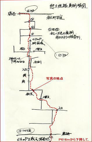 北側の尾根下端を下る.16:10 谷太郎林道にでて舗装された谷太郎林道にでる。谷太郎川の左岸に入り込む不動ノ沢,尻ノ水沢を渡れば先月下った尻ノ水沢林道と合わさっていた。 その先は既に知った道。県道64号線沿いの煤ヶ谷バス停にでる。もう直ぐヒルがでる。今シーズンの終わりが近ずいていた。 16:30煤ヶ谷bs17:04=17:40小田急本厚木.急行17:52=18:47jr新宿. ![]() 帰宅して入浴したをり手首付近がよく沁みた。細かい切り傷が両手に数多くある。藪が風を遮り暖かく.時折袖を捲き上げ行動した跡。 登り始めた東丹沢山塊 丹沢に登り始めたのが中学生の終わり.塔ヶ岳へ出向いている。そして翌月も再び単独で夜行登山で逆縦走を試みていた。 登山に目指すのは早かった。高校時代には少ないながら南アルプスを含め.関東近辺の山々を歩き始めている。 そして大学に入りRHCに入部.山のあり方を学び.OBとなって改めて子供と1991年に葛葉川本谷に入っている。 丹沢の沢登りは子供とのハイキングが初めてで.今までこの3つの山行しか出向くことはなかった。 それが昨年先輩の誘いを受け18年振りに漸く丹沢山塊の奥深く入山した。この入山が丹沢山塊を知る切っ掛けにもなった。 2ヶ月も経たずして御正体山から甲相尾根へ出向いている。杣道.経路.獣道の山,そこに惹かれ始めていた。 1964年05月に初めて入山。時を経て子供と1991年に沢登りする。その後18年も経過していた。それが昨年11月から怒涛の如く登り始めた。 晩秋から6回丹沢山塊に入り.今年2月には相州大山.三峰.嵐鍋山の周辺を歩き始めている。 再び上り始め程好いブッシュを探り径.磁石を握り探るルートに心を踊らさせていた。昨年春は三頭山笹尾根を繋ぐ縦走路を歩み, 今回は自分で探る径を求め歩いている。浅い山ではあるが冬の日帰り.一人旅の山としては素晴らしい山域見付けていた。 東京から近く,地図と磁石だけで歩む径。道標もなく擦れ違う人も殆ど会わず。 青春時代の藪山を思えば楽に歩める踏み跡だが程好い藪山を探るルートが心地よい。山ビルもいない来年1月に再び出向くと思う。 今は処冬のホームランドになりそうだ。・・地形図「青野原」「大山」「厚木」.山と高原08「丹沢」 息子が7月05日に第11回北丹沢12時間山岳耐久レースに出場 青根緑休暇村→平丸→鐘撞山→神ノ川ヒュッテ→日陰沢源頭→広河原→風巻ノ頭→姫次→平丸分岐→青根緑休暇村.山岳レース44k 結果は5時間58分29秒で目標の6時間切りを達成。男子39歳以下:76/666位. 男子総合:105/1300位 鍋嵐北尾根(ゴジラの背尾根) 物見沢右岸尾根下降―三峰北峰小唐沢川右岸尾根・・旧道と荒れた伐採地 鳥屋待沢左岸尾根下降・・鹿柵図 |