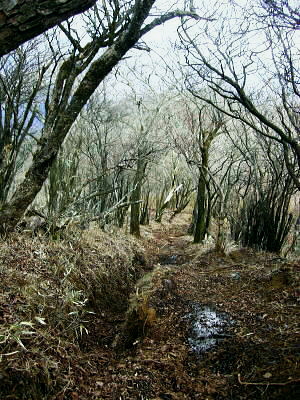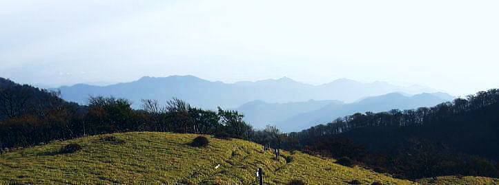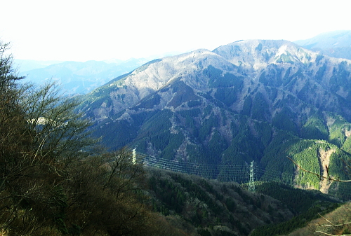 | 過っての綴られたヤビツ峠と丹沢山塊Top 昨年秋の「丹沢主稜・主脈・甲相尾根」を縦走。その続きとして「東丹沢の東端の東の山域」からまず入山する。 東丹沢山塊.東端の山々・・相州大山.三峰山.鍋嵐周辺 不動ノ峰付近より不動ノ峰付近より西面の仏果山と重なる鍋嵐.大山三峰.右よりが大山. 下った窪みがヤビツ峠・・2008.10.31/7:17 大山・鍋嵐周辺 2009年02月. 大山北尾根からネクタイ尾根―唐沢峠から三峰山不動沢左岸尾根・・煤ヶ谷bs 2009年02月. 大山北尾根13号鉄塔尾根と大ノ沢右岸尾根.及び三峰本峰竹ノ沢右岸尾根と七沢山郡界派生尾根・・七沢温泉入口 2009年03月. 士山峠から宮ケ瀬尾根.熊ノ爪周辺を探索―物見峠堤川を取り囲む尾根を周回・・辺室山越える 2009年03月. 鍋嵐北尾根を経て.物見沢右岸尾根下降―三峰北峰小唐沢川右岸尾根から鳥屋待沢左岸尾根・・煤ヶ谷bs 2010年03月. 滝ノ沢左岸尾根から鍋嵐一宮沢左岸尾根を下降―唐沢林道から物見峠越え・・煤ヶ谷bs ・・東丹沢の東端地域から入山.その後は東丹沢から丹沢.西丹沢へと山中湖湖畔まで.長い山の旅路が始まる。 本格的な丹沢山域の入山に合わせ.先ず東丹沢の東端を集中的に歩む。・・相州大山と大山三峰 第一弾は懐かしく子供達と歩んだヤビツ峠から大山北尾根へ 蓑毛から大山.石尊沢左岸尾根を下り唐沢峠―大山三峰山を経て不動沢左岸尾根から谷太郎林道.煤ヶ谷. 2009年02月02日.単独 イタツミ尾根から大山北尾根の石尊沢左岸尾根(ネクタイ尾根)・・懐かしいヤビツ峠・相模灘 唐沢峠から三峰山と不動沢左岸尾根・・山ビル 初めて表丹沢に入ったのは45年前の高校時代.30年前には子供達と葛葉川本谷遡行しヤビツ峠にでている。 それ以降は昨年の山行まで大分途切れた。改めて丹沢の山並みを知ろうと鍋割山稜から始まり.最後は西丹沢の西端.三国山稜まで歩む積りでいる。 今回は昔懐かしいヤビツ峠を訪れ.東丹沢の東に聳える大山・三峰山を尋ねたいと思っている。今日は私の誕生日.再び山に登り始めて4年目になる。 再び入山できたことに感謝し.昔何度か訪れたことのあるヤビツ峠から東丹沢の東端の低山を歩む。そこはまだ知らぬ好奇心をそそる山域でもだった。 2つ玉低気圧が通過するも丹沢では降雪にならなかった。2日続きの降雨も途切れ.昨夜は蒼空が仰がれた。 ただ予報は外れ.山は厚い層雲に覆われ崩れ気味.霜柱を踏み続けた山になる。黄昏時.下山してから煤ヶ谷(すずかや)で漸く陽が射し出した。 大山と三峰山・鍋嵐 相州大山.三峰.鍋嵐の山々は東丹沢のその又東端の低山で.宮ケ瀬湖の湖畔に入り込む中津川藤熊川の源流に構えているのがヤビツ峠。 南北に分水嶺を成す南側は表丹沢側の水無川金目川の流域で.まずは懐かしいヤビツ峠から入山することを第一の目的とした。 峠越えの旧道.蓑毛(みのげ)から入山し.大山.三峰の新たな山域を目指す。 大山はヤビツ峠の東に聳え.奥多摩からはピラミット形の小さな山容をなし.雨降山(あぶり)とも呼ばれ.古くから庶民の信仰を集めている。 江戸時代には大山講で栄えていた。又奇峰絡む三峰山は大山の北方に位置し.丹沢三ッ峰と区別する為大山三峰と呼ばれている。 古くは八菅神社の修行場であったと云われ.鎖やロープが多く.標高の低いわりに剣山の深みを味わえる山だった。 更に北側の鍋嵐は藪山で.熊が支配する領域になる。大山を源流とする唐沢川がこれらの山々を回り込ぬよう宮ケ瀬湖へ流れ込んでいる。 この小さな山地に初めてヤビツ峠から訪れる。 切っ掛けは昨年11月に表丹沢から甲相尾根へ丹沢山塊を横断している。その折.PCのお世話になってからになる。 丹沢主脈.主稜.甲相尾根を調べているうち.大森誠氏のHP「誰も知らぬ丹沢」から大山北尾根の支尾根群に興味がそそわれ知るようになる。 大山北尾根を南下して戻り5号鉄塔尾根を登り.唐沢峠を経て七滝沢温泉へ下る計画を立てている。ただ後に北尾根末端から作業用モノレールが. 設置されていることを知る。まだ人工的なものに対する好奇心は弱く.後半は変更し唐沢峠から下山せず,大山三峰を越えることにした。 蓑毛からヤビツ峠―大山へ 2月02日(月)曇 jr御徒町4:44=神田=5:18小田急新宿¥630,急:31=6:37秦野渋沢.神奈川中央交通バス:45=7:10蓑毛bs 一8:15ヤビツ峠一9:30大山北尾根:55 新宿駅を発った小田急線はまだ闇に中.厚木付近で東空が白みを帯び.夜明けの兆しを示しだしていた。 どんよりした空模様が相模川の鉄橋から広く開かれ望まれる。厚い層雲に覆われた雲の割れ目に淡い陽光が漏れ始めていた。 それは伊勢原.鶴巻温泉.秦野へと丹沢山地に近ずくにつれ刻一刻と夜明けの兆しは明るさを増させ.雲天の中に日の出を迎えている。 秦野駅に下車したのは子供達と来て以来.何十年振りだろう。外見は余り変わっていないよう思われた。 路線バスに乗車.秦野駅前の短い大通りを抜けると水無川にぶち当たる。流れる中央の両岸はヨシと堰で上手く構成され. 街の中を流れる河川としては見栄えのよい渓相に造られ